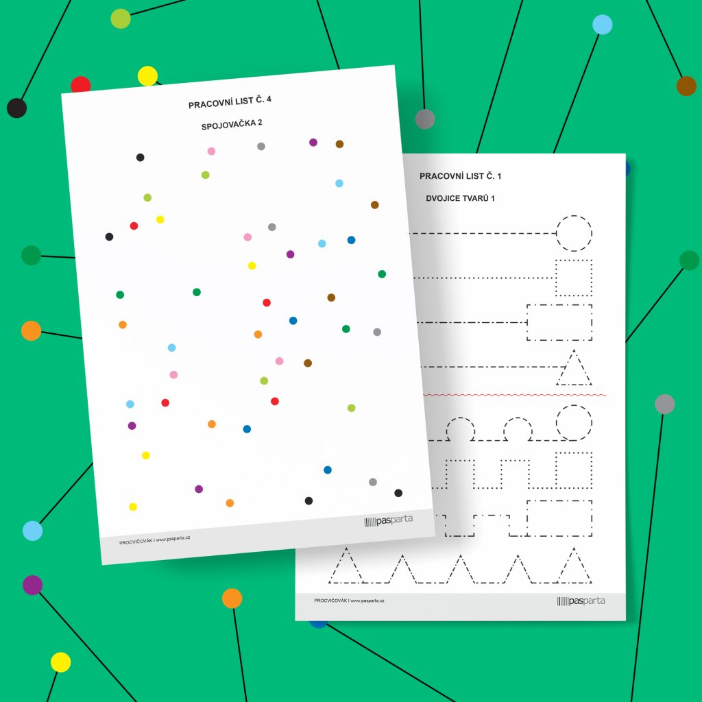 Materiál obsahuje pracovní listy: Dvojice tvarů, Spoj body podle zadání, Co je to?, Geometrické tvary, Spojovačka + další varianty.